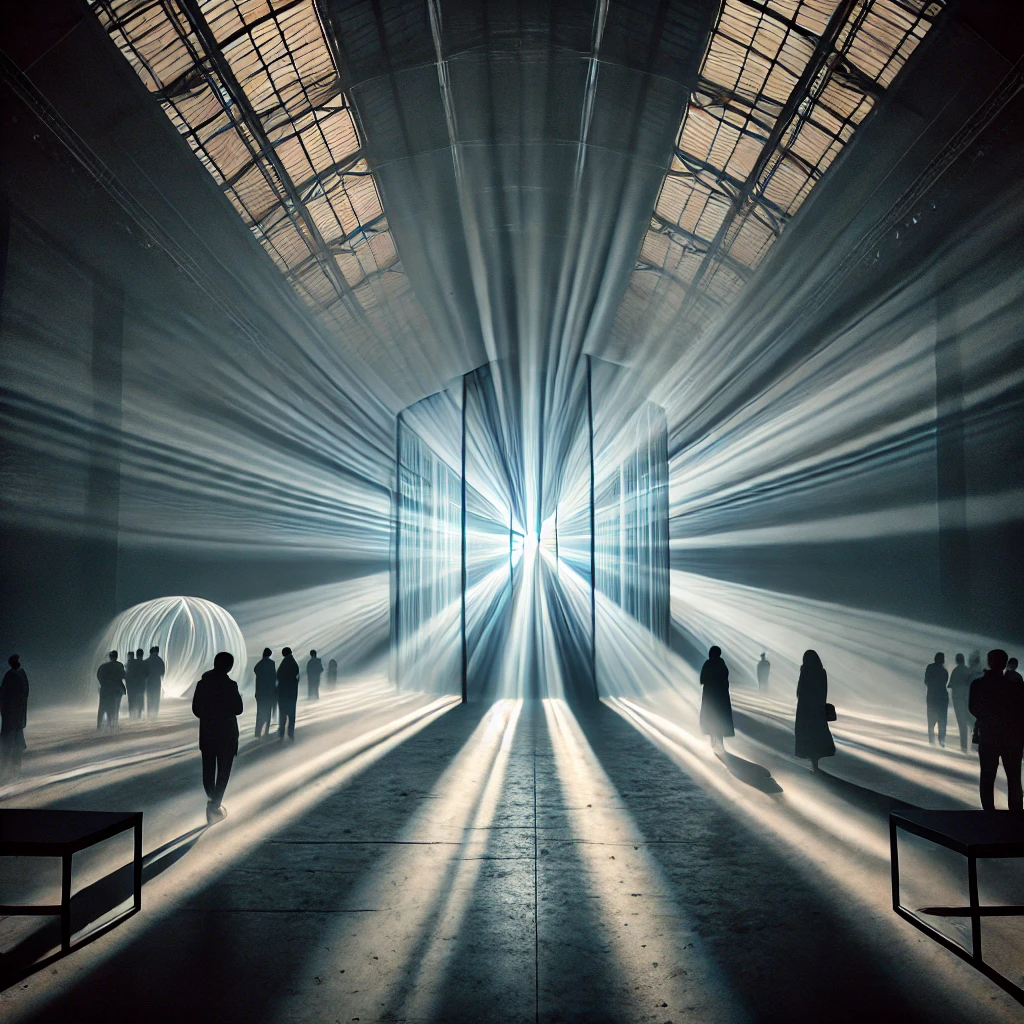 A solo exhibition by Anthony McCall showcasing immersive 'solid light' installations exploring light, space, and time, in London until April 27, 2025.