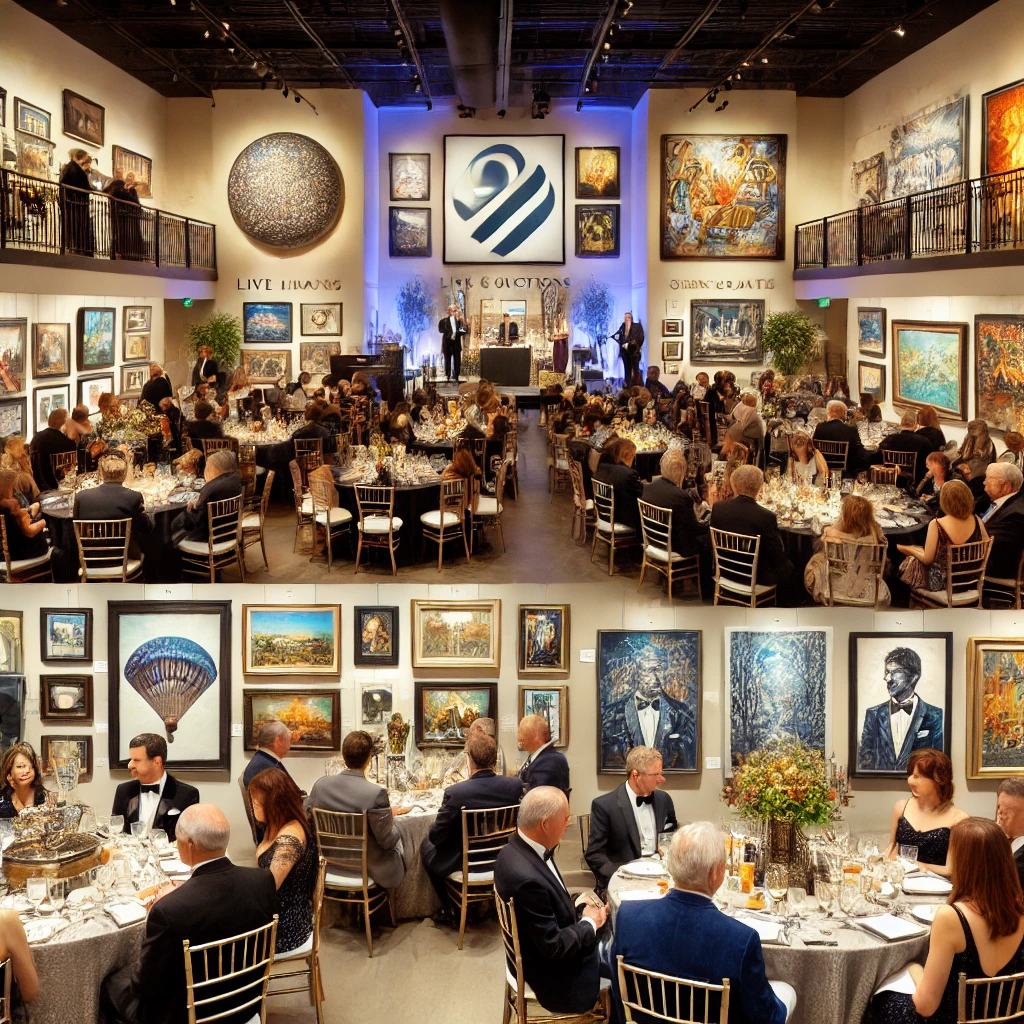 An inaugural gala at Blue Line Arts Gallery celebrating the arts with auctions, dinner, and performances to support the local creative economy