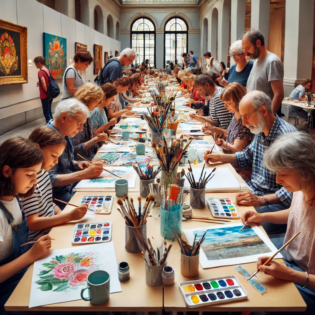 A casual art-making session in Paris on February 1, 2025, inviting visitors to create artworks inspired by museum exhibitions at their own pace.