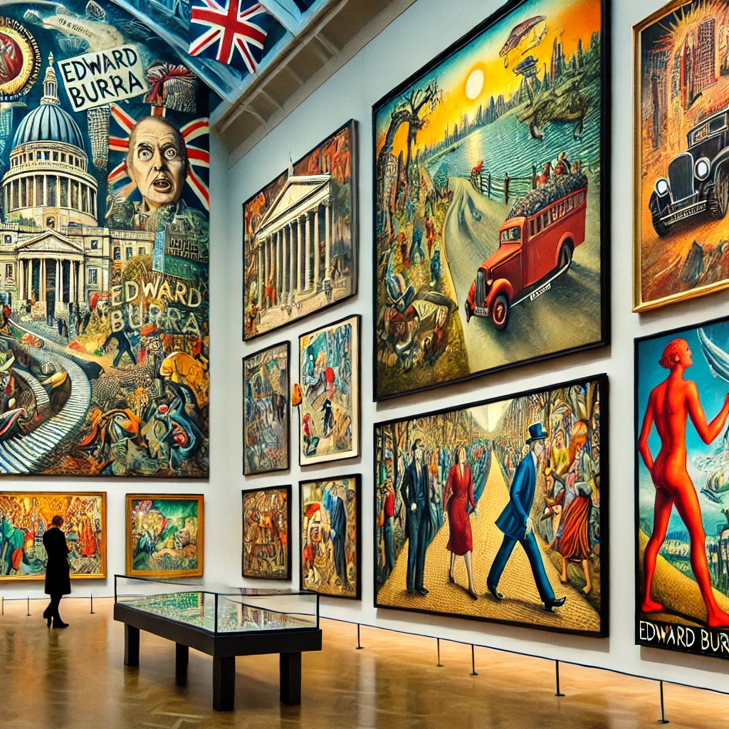 An exhibition showcasing the works of Edward Burra, a British painter known for his vibrant and often surreal depictions of urban life, landscapes, and social gatherings. Burra's art captures the energy and eccentricity of 20th-century life, blending elements of satire, social commentary, and fantastical imagery.