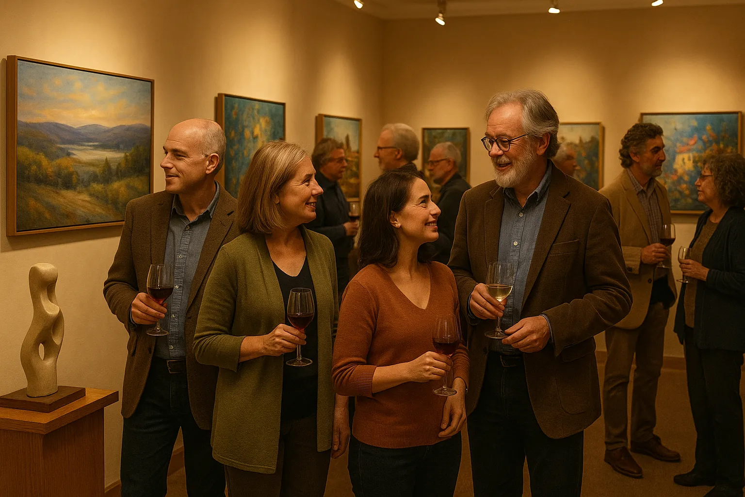 An exclusive gallery preview night in Holmfirth, showcasing regional artists, original works, and a relaxed wine reception.