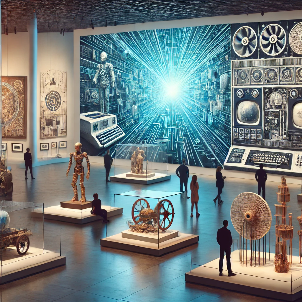 An exhibition examining the relationship between art and technology before the advent of the internet, featuring works that explore themes of innovation, communication, and the intersection of art and science. The exhibition includes a range of media, from early computer art to kinetic sculptures, highlighting the ways in which artists have engaged with technology over time.