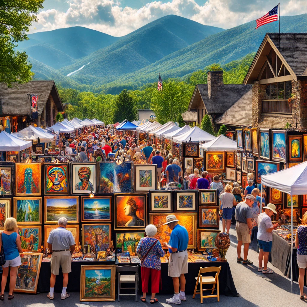 A vibrant art fair in Gatlinburg showcasing exceptional local and international artwork amid the scenic Great Smoky Mountains