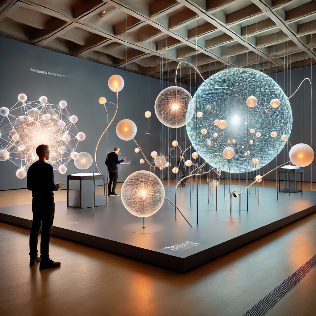An immersive exhibition featuring interactive installations and kinetic sculptures by Pors & Rao, exploring art, technology, and human experience.