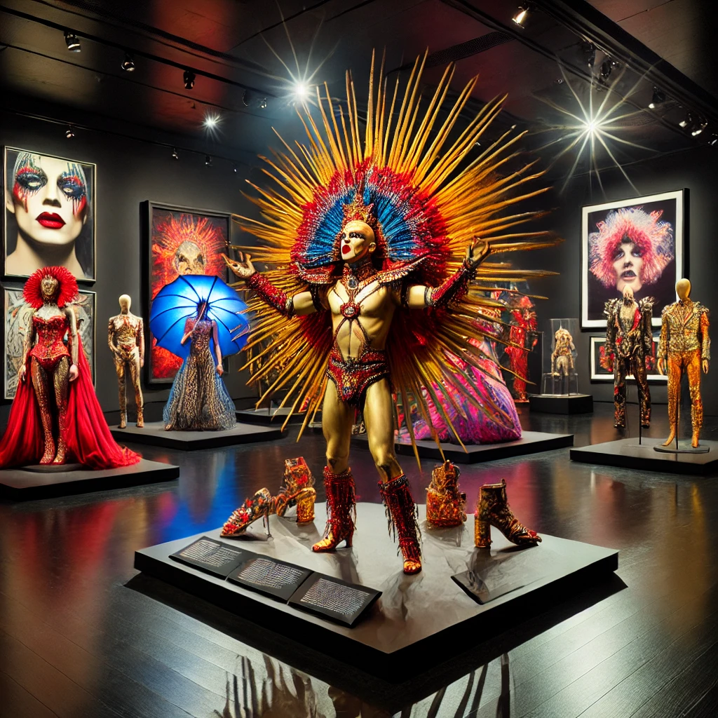 An exhibition celebrating Leigh Bowery's boundary-pushing art and extravagant costumes, showcasing his transformative and provocative creativity.