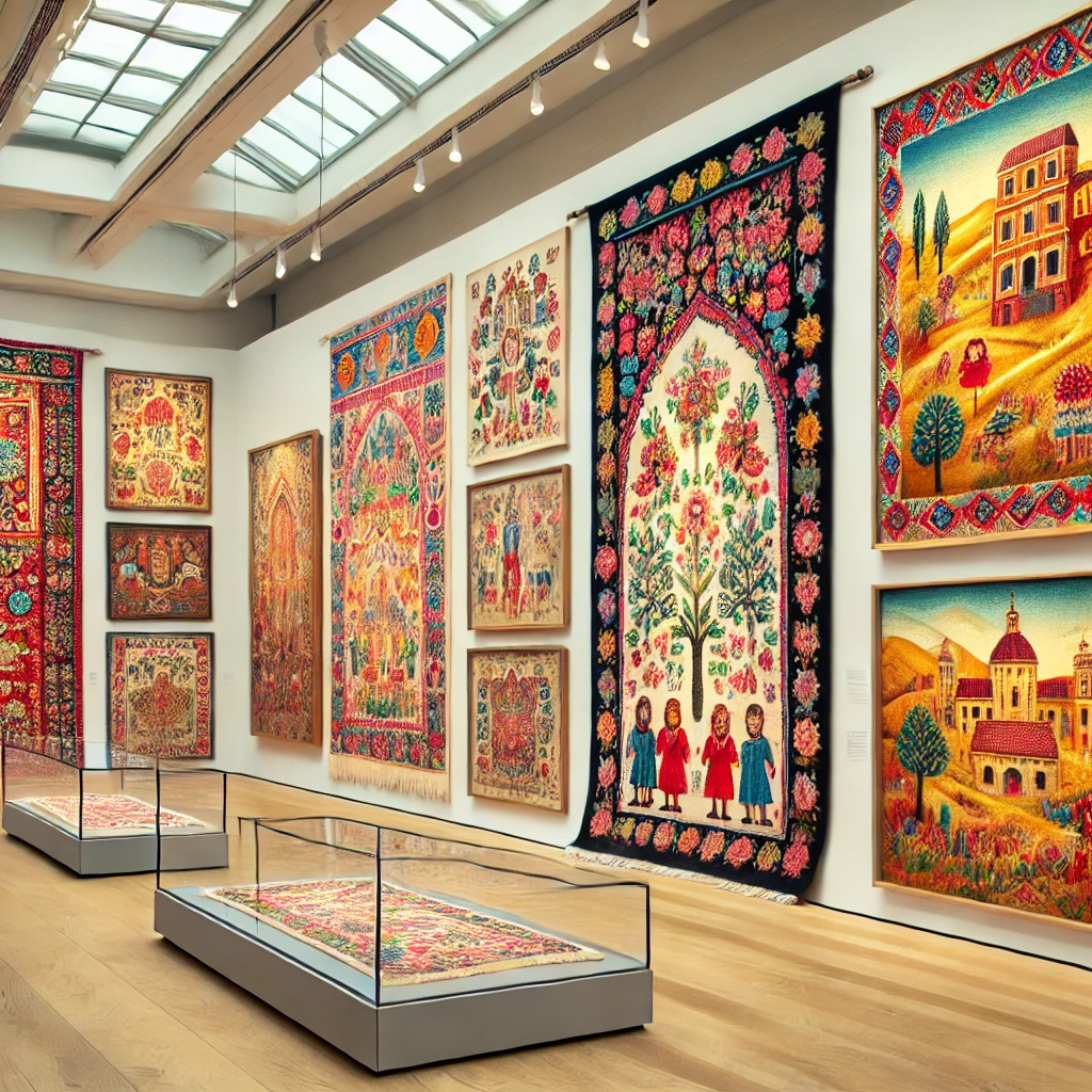 A solo exhibition by Małgorzata Mirga-Tas, showcasing vibrant tapestries celebrating Romani culture, identity, and social justice themes.
