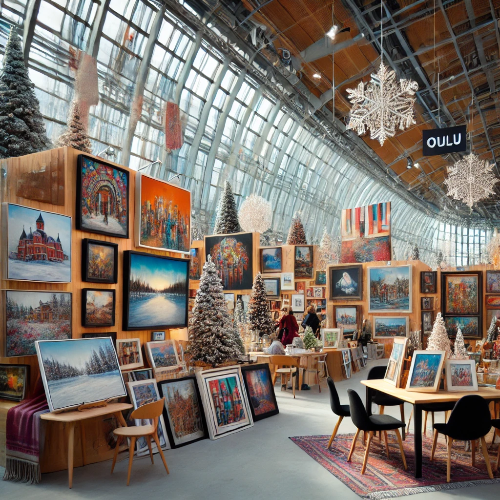 An art fair in Oulu showcasing contemporary paintings from emerging and established artists.