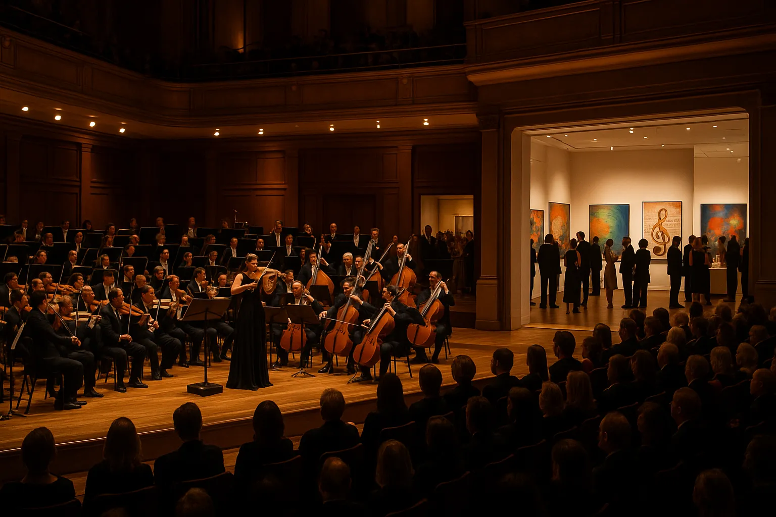 An unforgettable evening of music and art featuring Bernstein, Bruch’s Violin Concerto with Ànnika Jenkins, and Mussorgsky’s Pictures at an Exhibition, plus a curated visual art showcase.
