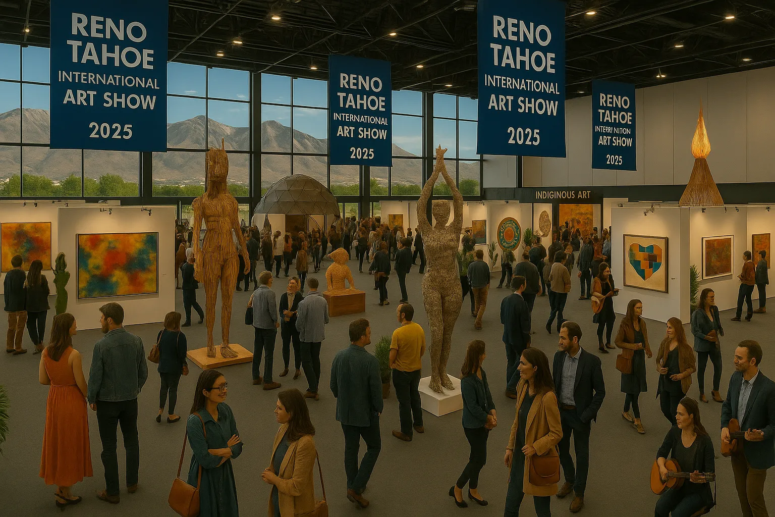 The Reno Tahoe International Art Show 2025 (Sep 11–14) transforms Hall 4 of the Reno-Sparks Convention Center into an international art hub, showcasing galleries, independent artists, Indigenous works, sculpture, film, and music.
