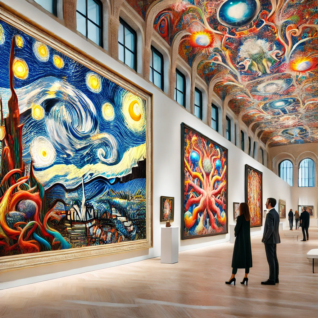 The exhibition showcases Matta's dynamic and expansive works, exploring themes of cosmic energy, subconscious landscapes, and human existence.
