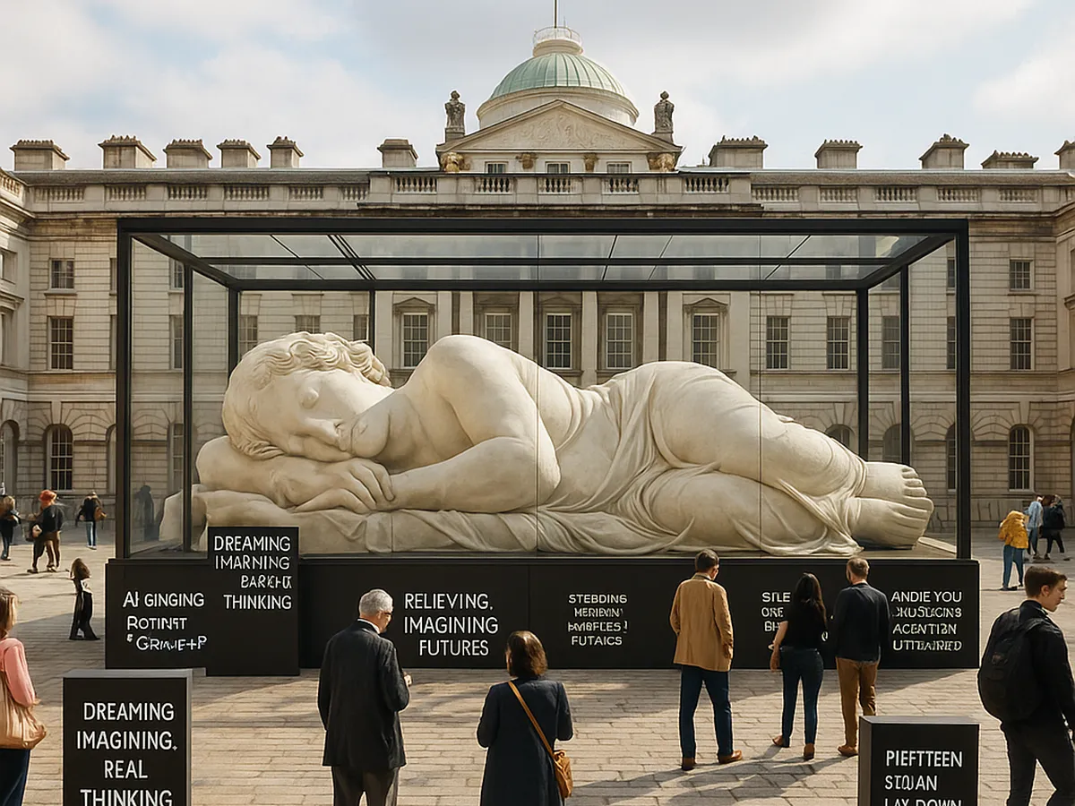 From August 7 to September 14, 2025, Somerset House presents The Spell or The Dream, a major new commission by Turner Prize-winning artist Tai Shani. Set in the Edmond J. Safra Fountain Court, this powerful installation features a 10-metre-long sleeping figure encased in glass, accompanied by a dreamy soundscape and the 24/7 global broadcast Dream Radio. With live talks, performances, and family events throughout the summer, this free exhibition explores dreaming as an act of resistance, collective memory, and visionary possibility.