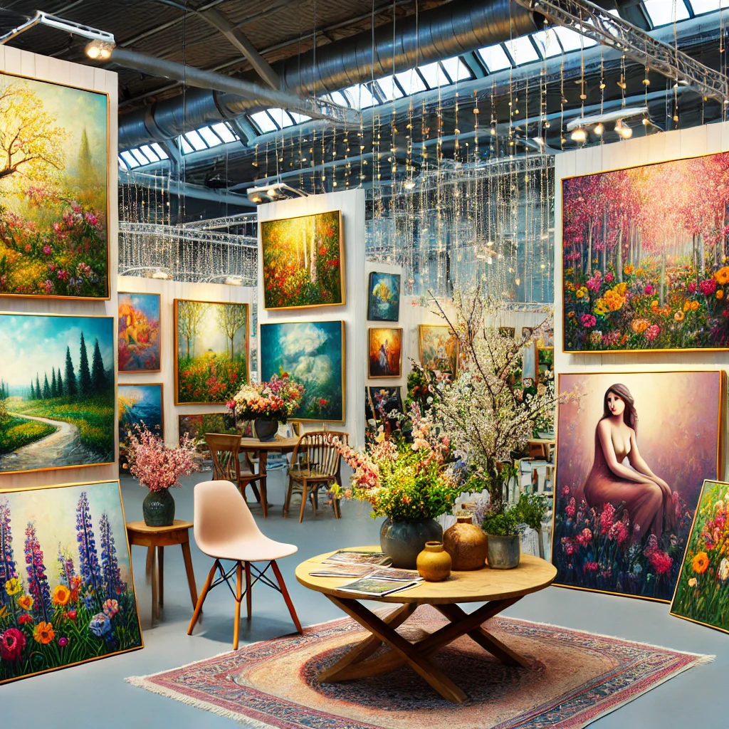 An art fair in Tampere showcasing contemporary paintings from emerging and established artists.
