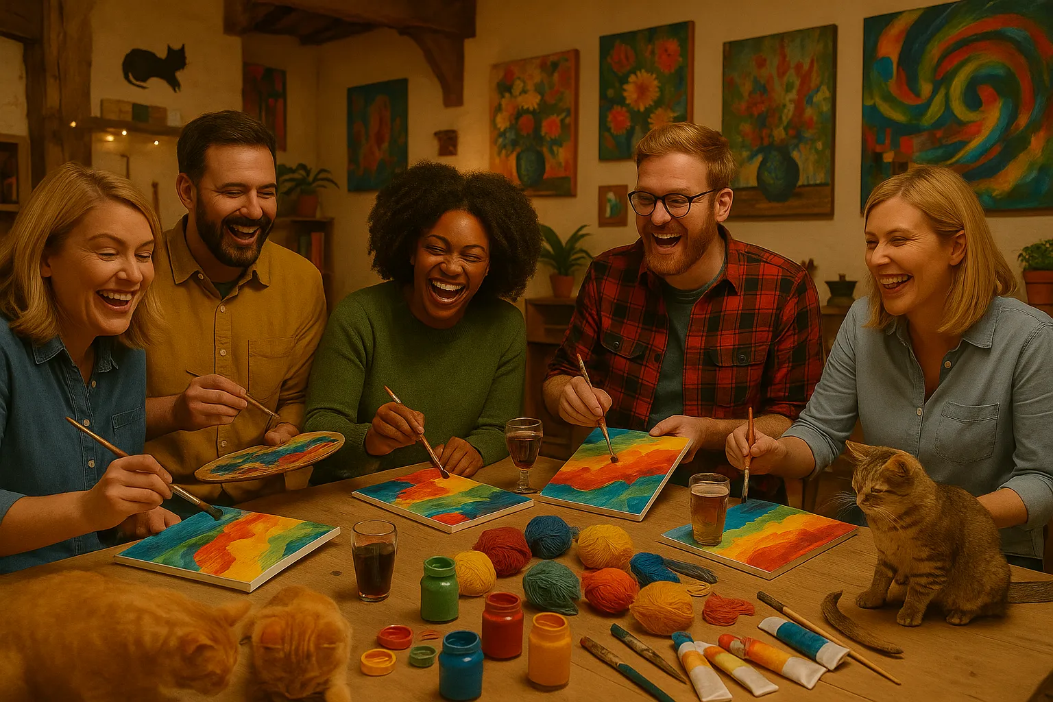 Bring your team to Art Social Club in London Bridge for a relaxed paint & sip experience—BYOB style. Guided by a friendly artist, you’ll learn simple stencil techniques, explore colour mixing, and create your own masterpiece, all while enjoying your favourite drinks and snacks. Perfect for beginners, these team sessions focus on fun, connection, and creativity—plus, you might even meet the studio’s two resident cats!