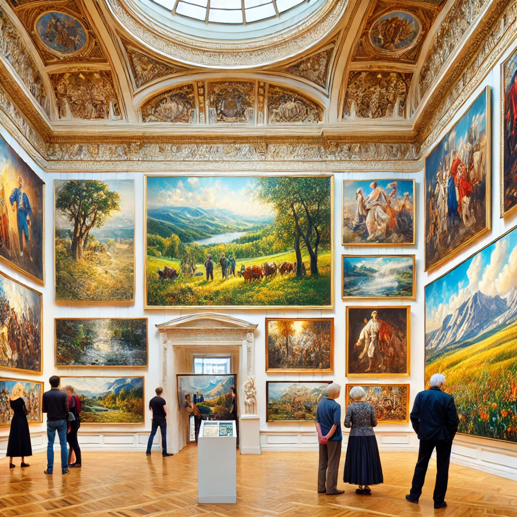 An exhibition showcasing the diversity and richness of Slovenian painting, featuring works by prominent Slovenian artists from different periods. The exhibition includes landscapes, portraits, and abstract compositions, highlighting the unique artistic traditions and innovations of Slovenia.