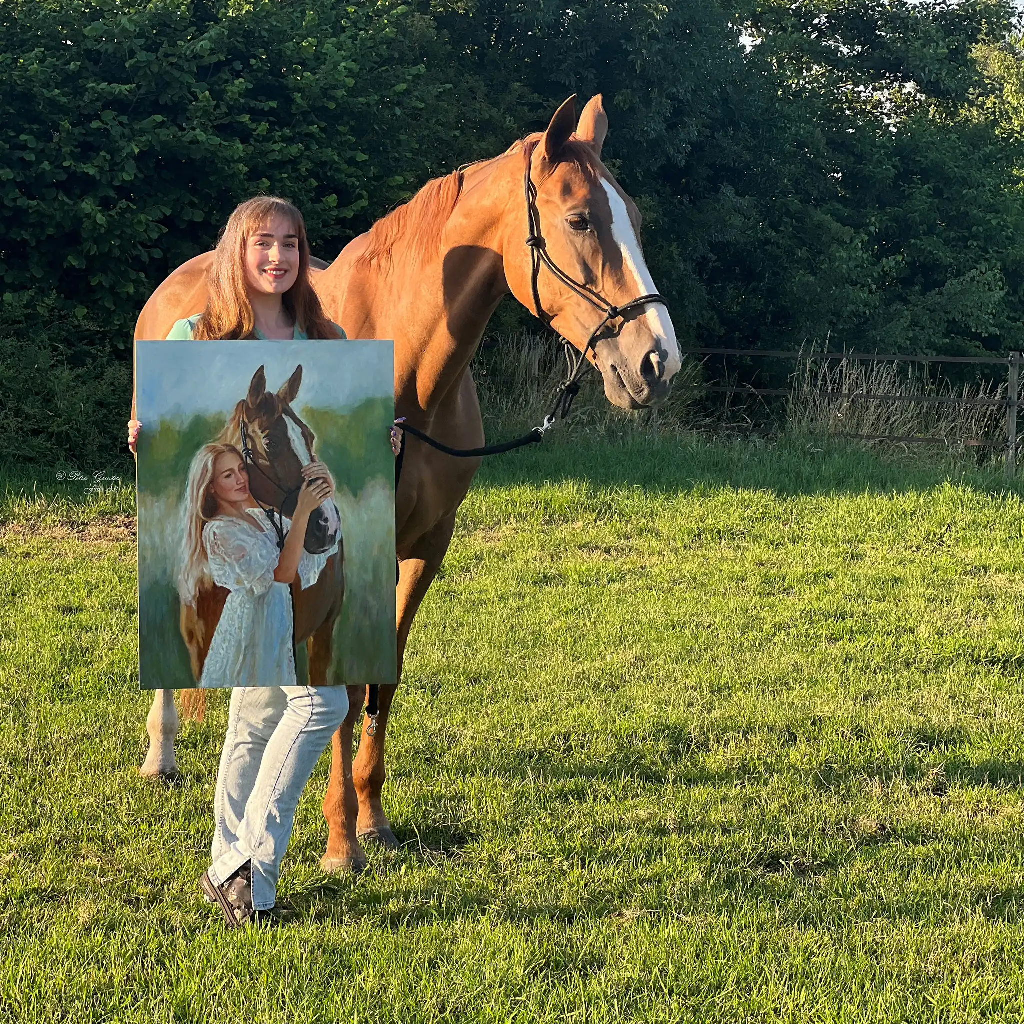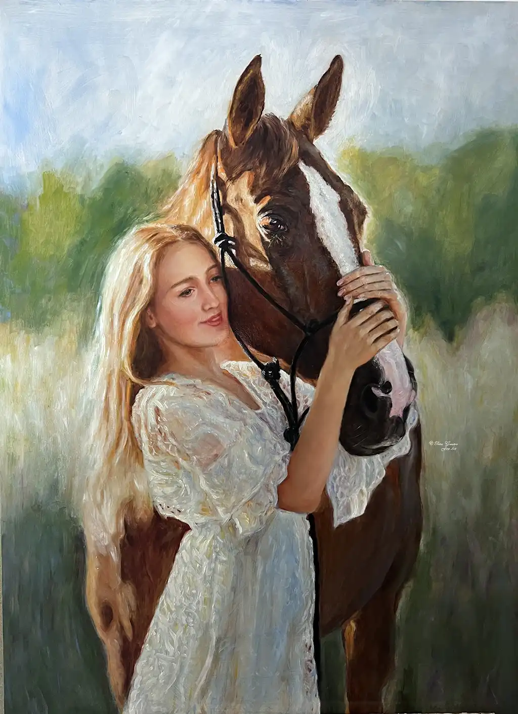 A Girl and Her Horse - Realistic Oil Portrait of a Heartfelt Bond.