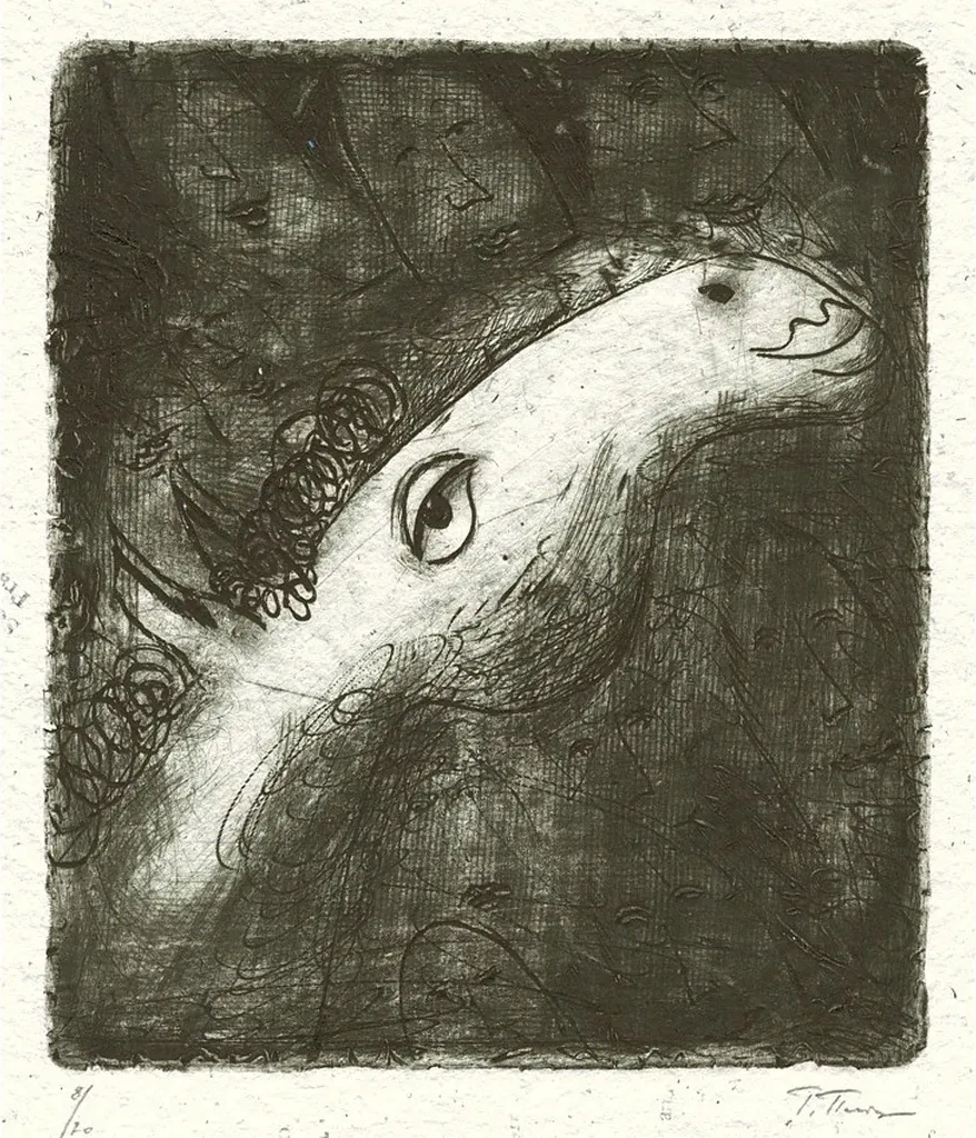 Measuring 16 x 14 cm, this piece is perfectly suited for intimate spaces such as study rooms or libraries, where its introspective qualities can shine. It is also a valuable addition to a gallery or collector’s display, offering a timeless conversation starter. The etching demonstrates Taras Plishch’s mastery of the medium and his ability to evoke depth and emotion through minimalistic yet profound imagery.