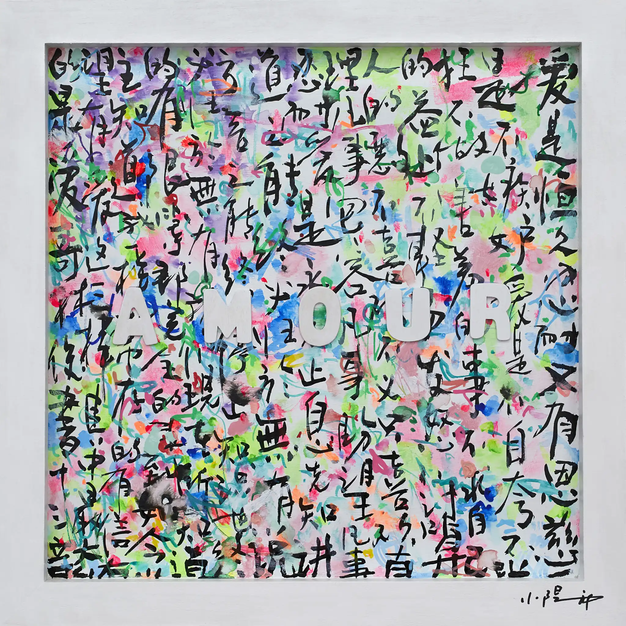 Created in 2024, this 35 x 35 cm mixed-media artwork is a vibrant and uplifting composition that blends East and West, combining Chinese calligraphy with bold French text. The word "Amour" takes center stage, embodying the universal theme of love. The artwork bursts with multicolored layers of acrylics, collages, and delicate strokes, reflecting Galas' signature style. The interplay of textures and vivid hues evokes a sense of joy and peace, while the calligraphy pays homage to the artist’s roots in Chinese art history. Her integration of biblical references and spiritual undertones adds an extra layer of depth, making this piece not only visually stunning but also emotionally resonant. Perfect for living rooms, children’s rooms, or creative studios, "Amour IV" radiates positivity and warmth. It is an artwork that invites viewers to pause and appreciate the beauty and harmony in diversity. Galas' commitment to promoting peace and love is evident in every stroke, making this piece a timeless treasure.