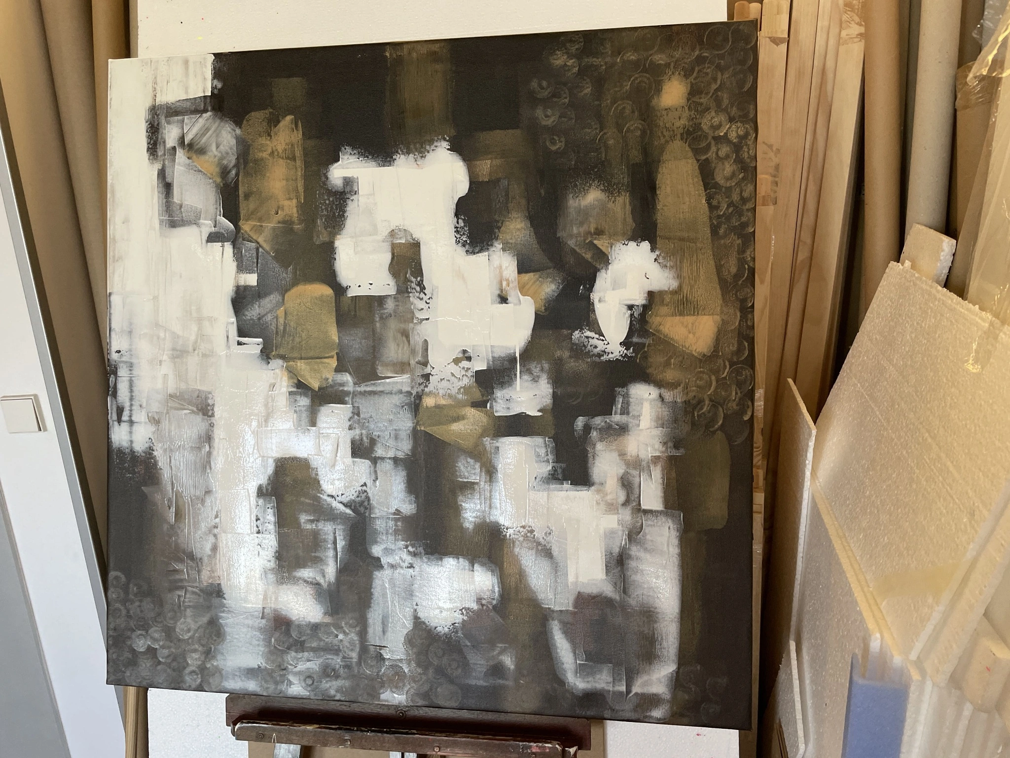 Garay’s signature style, blending organic elements with geometric abstraction, invites the viewer into a contemplative exploration of nature and emotion. The layering techniques and muted yet rich palette create a sophisticated atmosphere, making this artwork an ideal addition to dining spaces, study rooms, or galleries. The piece exudes warmth and subtlety, resonating with themes of seasonal change and the beauty of impermanence.