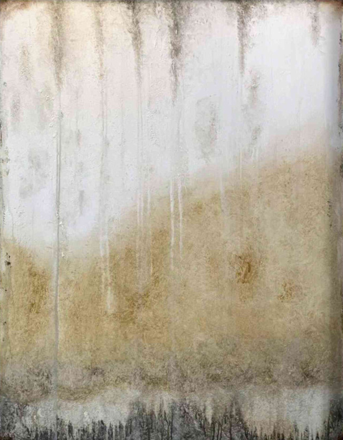 An abstract painting featuring earthy tones with subtle drips and textures. The piece conveys a serene and contemplative mood, creating a harmonious blend of natural elements.