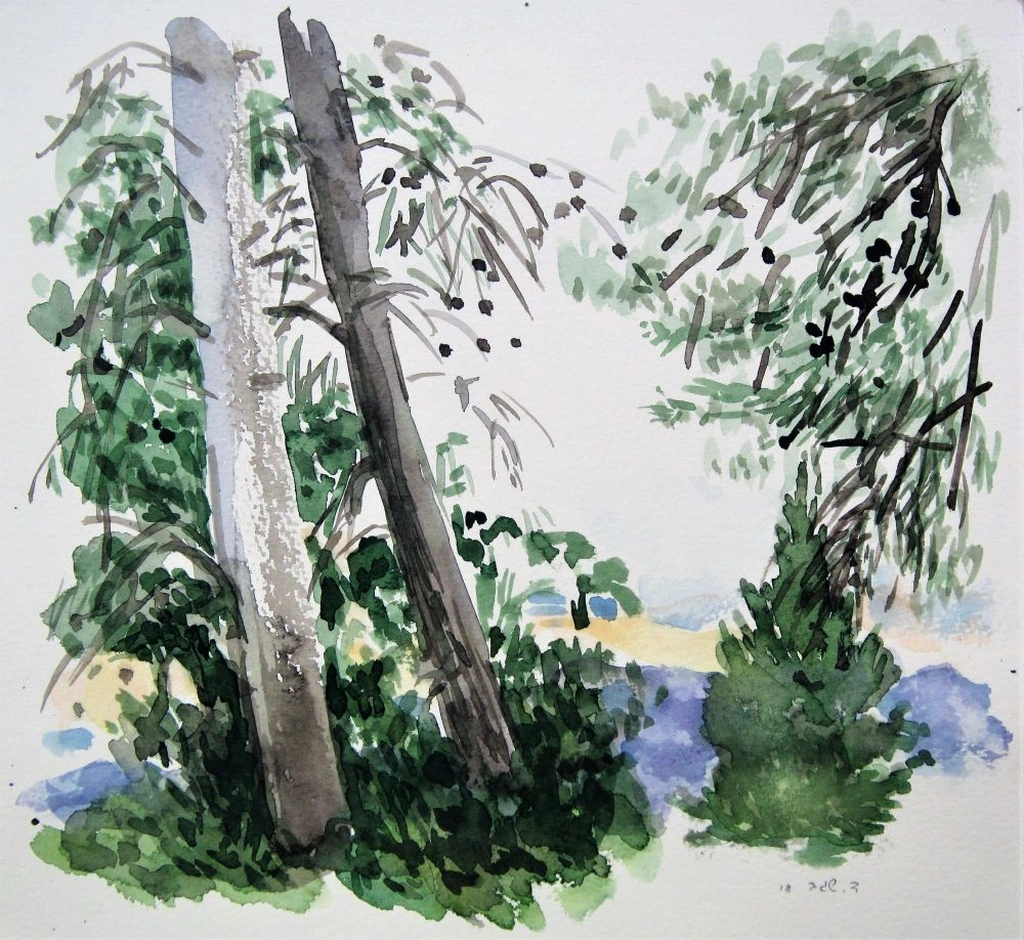 Between the trees, 2025 A Watercolor on Paper, Impressionism, Painting