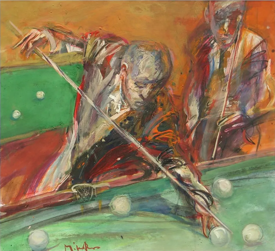 Billiards 2 Painting – A Dynamic Expressionist Masterpiece by Mikhail Mikora