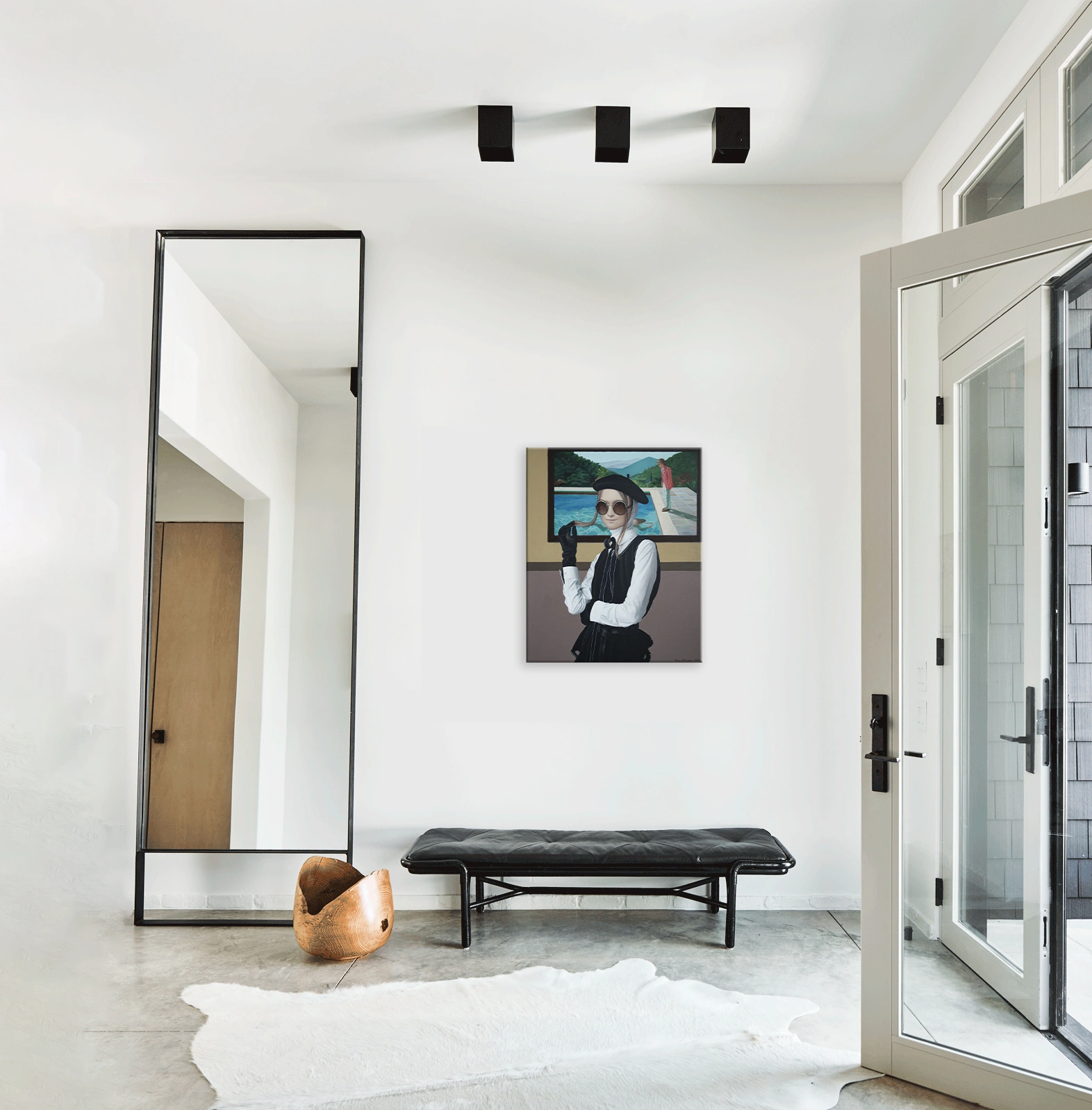 A realist portrait blending fashion and introspection, Black Leather Gloves invites quiet contemplation through stylish contrast and symbolic composition.