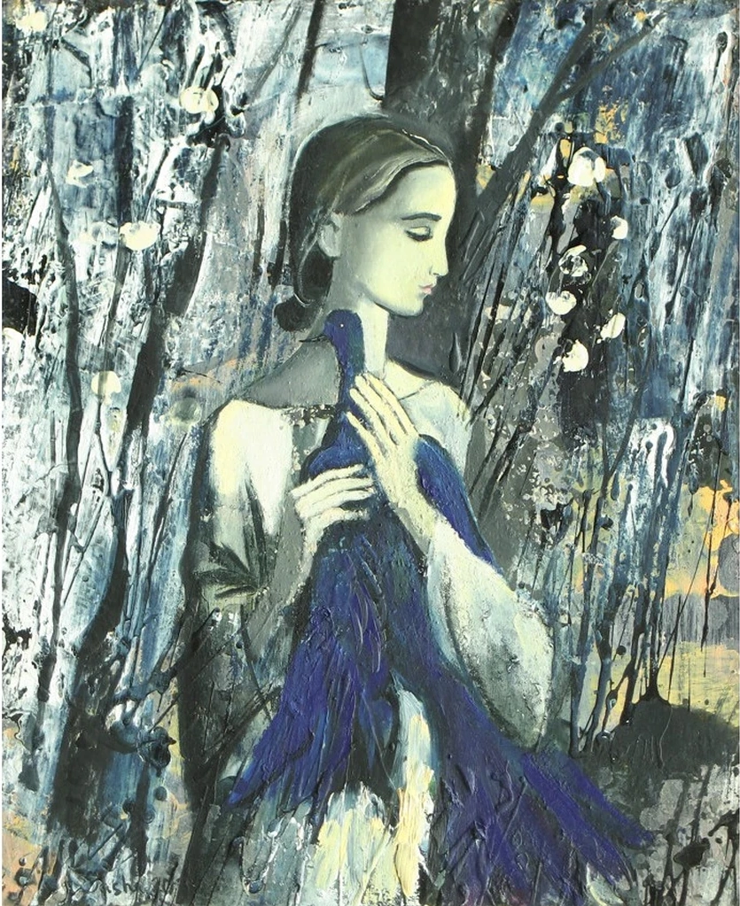 Bakhina’s masterful use of color creates a striking contrast between the dark background and the luminous blue bird, symbolizing hope, freedom, or the mysteries of the soul. The expressive layers of paint add to the painting’s depth, making it a mesmerizing focal point in any space. Whether displayed in a meditation room, study, or art gallery, "Blue Bird" is a profound and evocative piece that speaks to the imagination and the spirit.