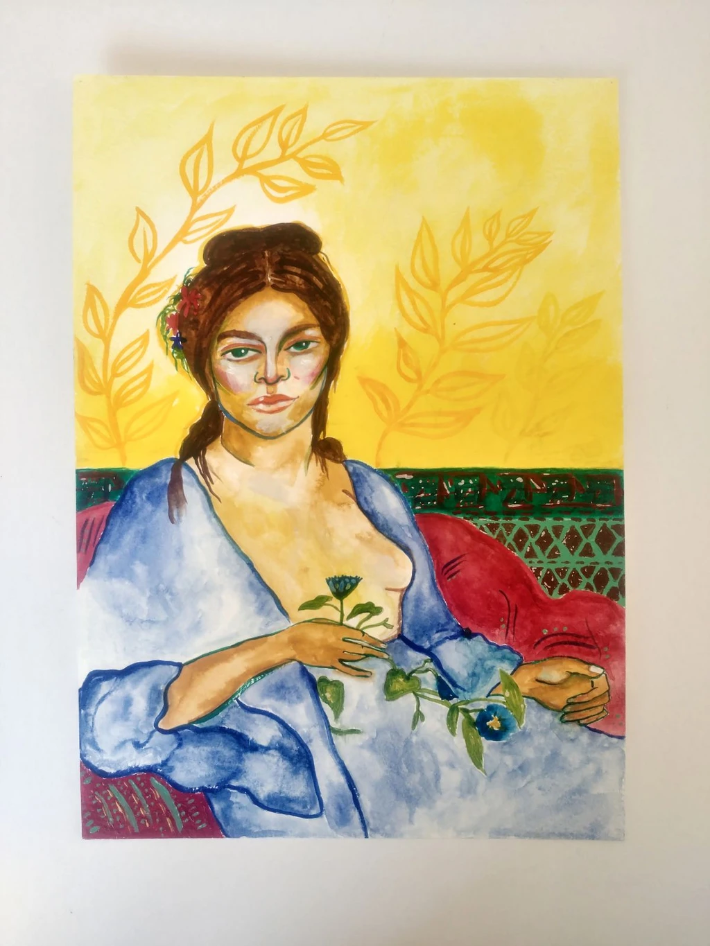 Abisdris, a distinguished graduate of Bezalel Jerusalem, is renowned for her expressive and illustrative approach to portraiture. Her use of acrylics, watercolors, and ink in this piece lends it a dreamlike quality, where soft hues blend effortlessly to create depth and emotion. Ideal for elegant interiors, collector spaces, and art galleries, Blue Robe is a timeless work that speaks of beauty, introspection, and quiet strength.