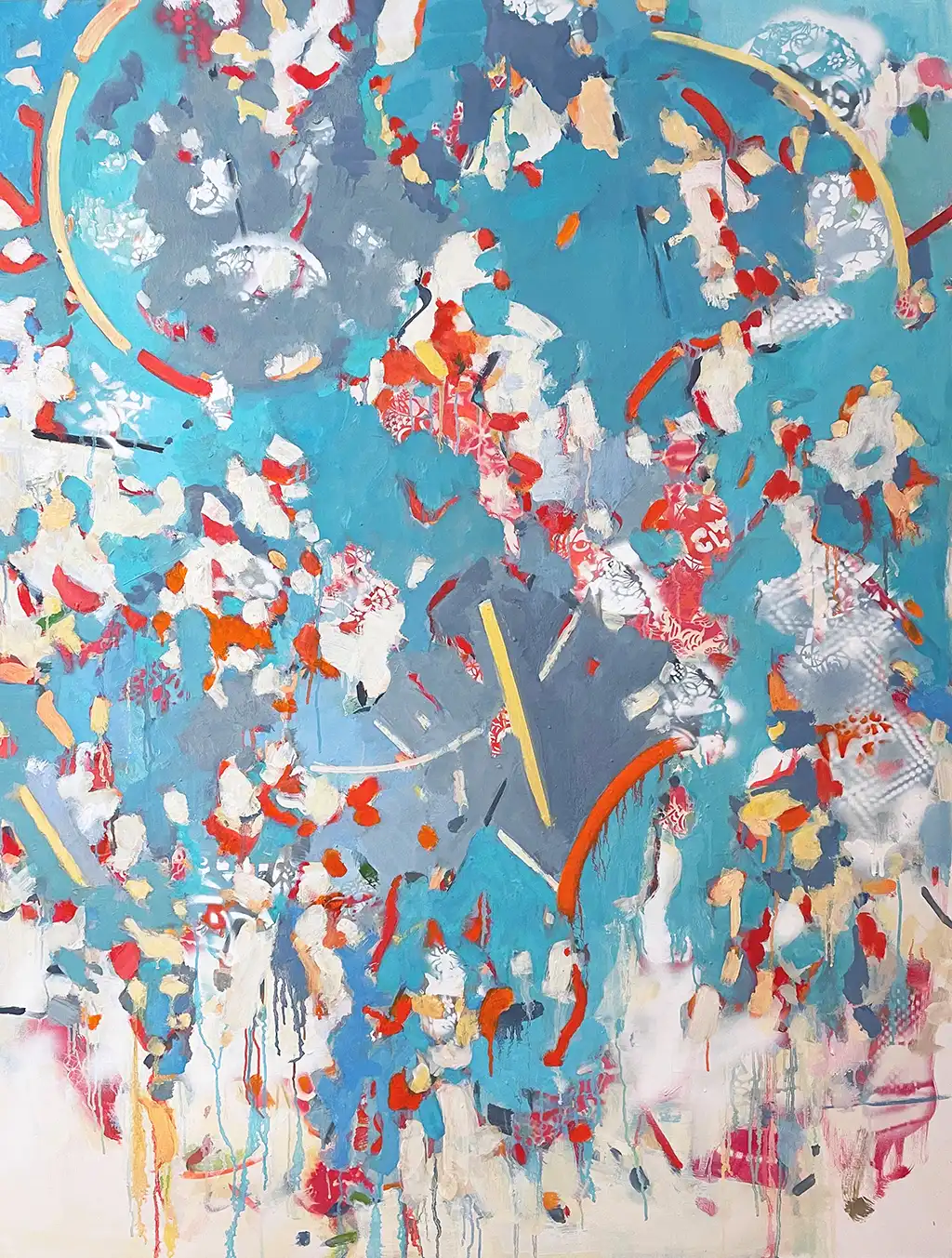 Calico by Gina Werfel is a dynamic and thought-provoking 48x40 inch abstract oil and spray paint on canvas, created in 2023.
