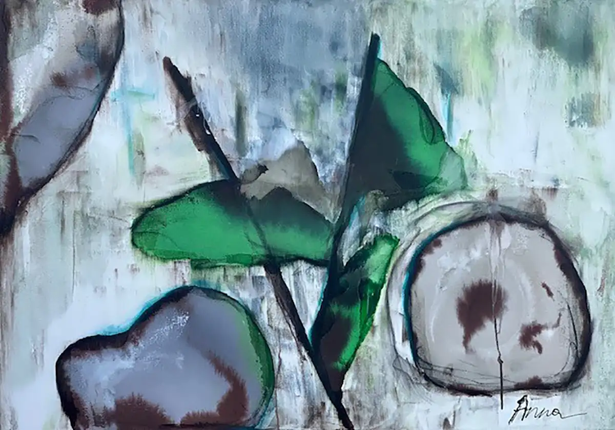 The "Circles of Life" painting by Anna Ayash gracefully embodies the ebb and flow of natural life cycles through its abstract form and thoughtful color scheme. Part of the "Nature has given" series, this piece features organic shapes that seem to pulsate with life, rendered in harmonious shades of green and brown against a faded backdrop. The ethereal play of color and form invites meditation on growth, renewal, and the interconnectedness of all living things. Its size is perfect for personal spaces where reflection is sought, like a home library or quiet sitting area. The artwork also lends itself to public spaces such as a wellness center or a contemplative gallery, where its visual narrative can resonate with a wider audience.