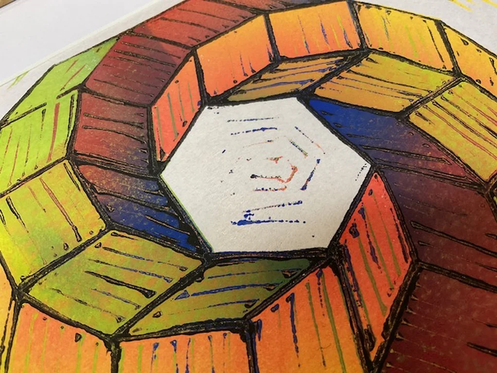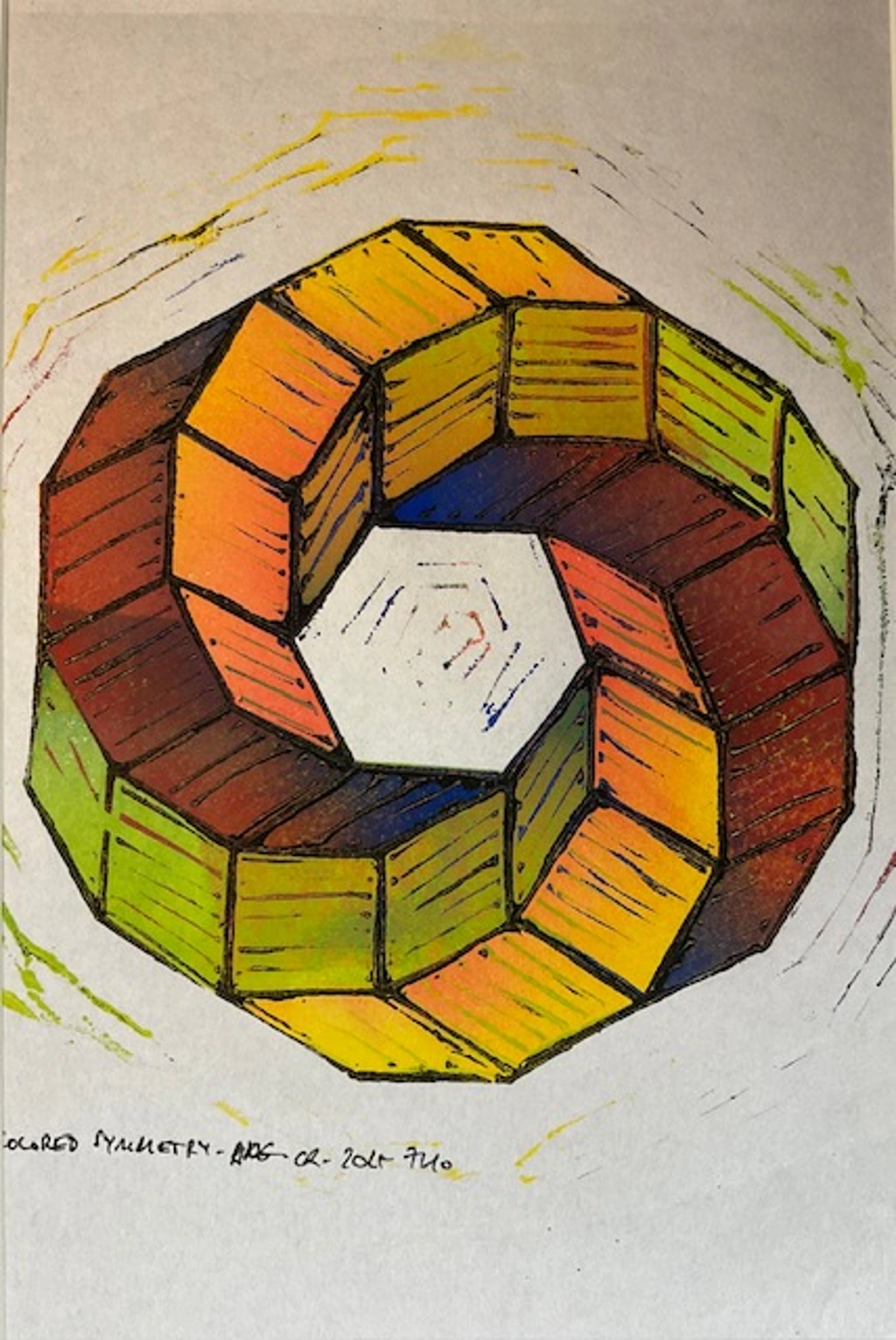 Colored Symmetry - Ring - 7/10: A Unique Geometric Linoprint Masterpiece