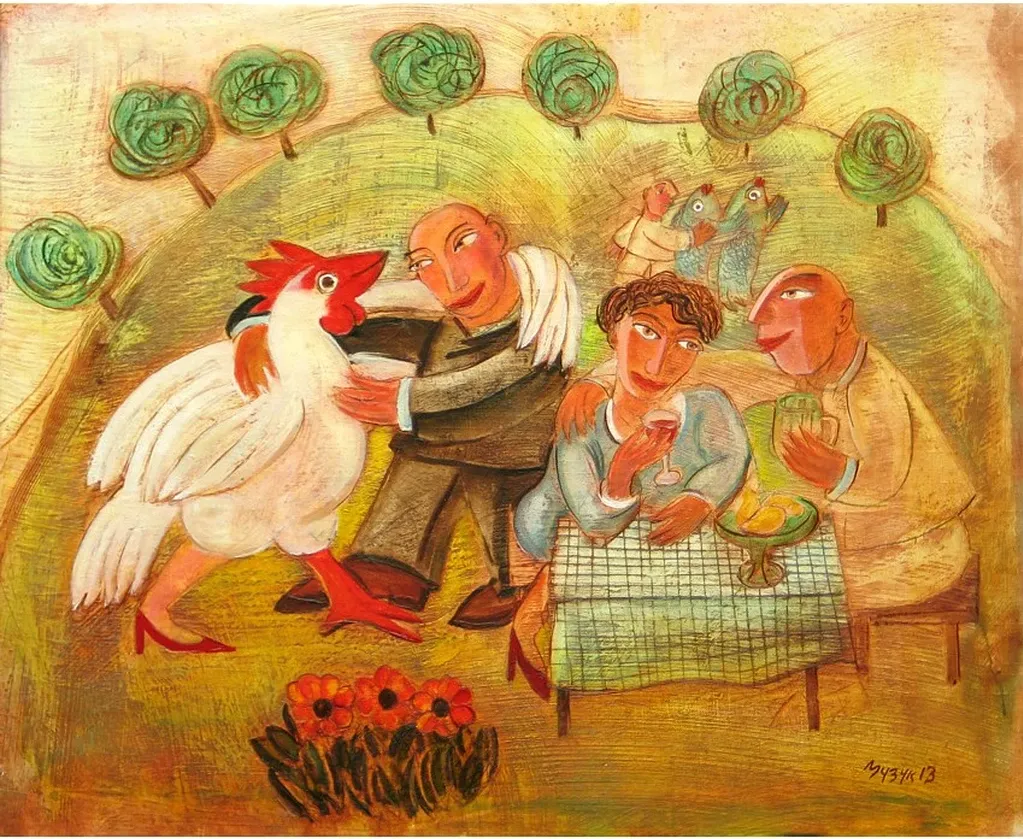 Roman Zuzuk is a Ukrainian artist whose colorful, whimsical works blend childhood memories with subtle social commentary and modern fables.MORE ARTWORKS BY THIS ARTIST
