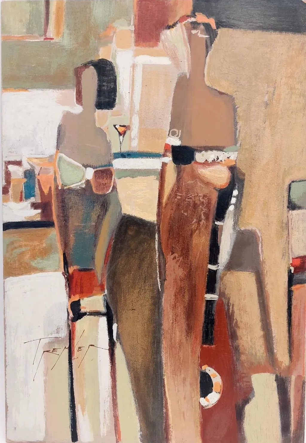 Ideal for lounge areas, dining rooms, luxury hotel interiors, gallery spaces, or contemporary offices, "Drinking at the Bar" brings a sense of style and refinement to any environment. Tremler’s ability to blend abstraction with narrative makes this piece a timeless and thought-provoking addition to any collection.