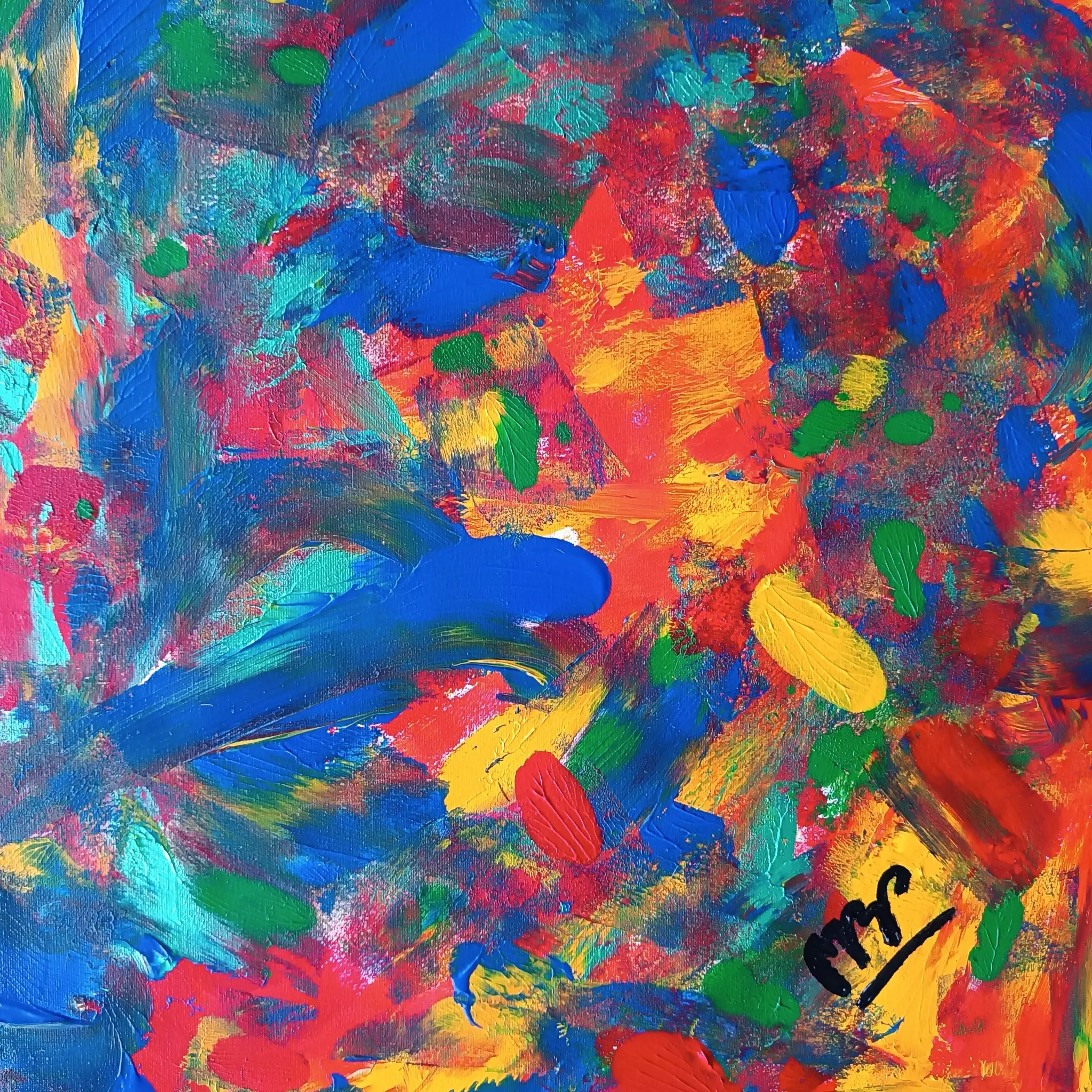 Measuring 60 x 60 cm, this acrylic-on-canvas piece with a matte varnish finish bursts with the interplay of primary colors, bold brushstrokes, and contrasting green and orange accents. The composition conveys a sense of joy and playfulness, reflecting Montse’s unique artistic approach to capturing emotion through color. The expressive brushwork and dynamic splashes of vibrant tones create a rhythm that inspires creativity and uplifts the viewer’s mood. Perfect for living rooms, children’s rooms, or creative studios, "Essentials" serves as a beacon of bold and uplifting energy in any space. Its contemporary style and radiant color palette make it an ideal choice for those seeking to celebrate art as a source of inspiration and positivity.