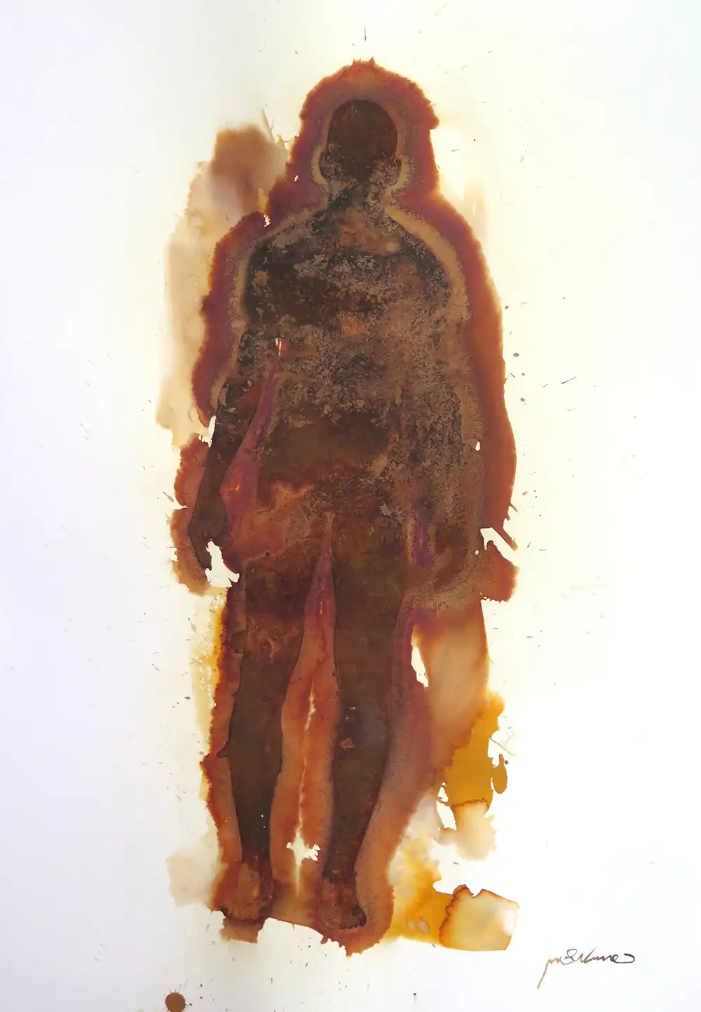 In "Ethereal Echo Frequencies," Carmit Weitzman captures a human silhouette that hovers between the material and the immaterial, resonating with the series' exploration of life's vibrations. The silhouette is detailed with industrial materials, their rust and texture echoing Weitzman's fascination with the transformation of matter and its spiritual parallels. The palette consists of warm browns and ochres, enveloping the figure in a soft, luminous halo that could symbolize an aura or a metaphysical frequency. This work, which reflects the complex themes of connection and transformation within the human soul, would make a profound impact in a reflective space such as a meditation room or a personal retreat. The piece prompts an emotional response of introspection and peace, inviting viewers to ponder the deeper layers of existence.