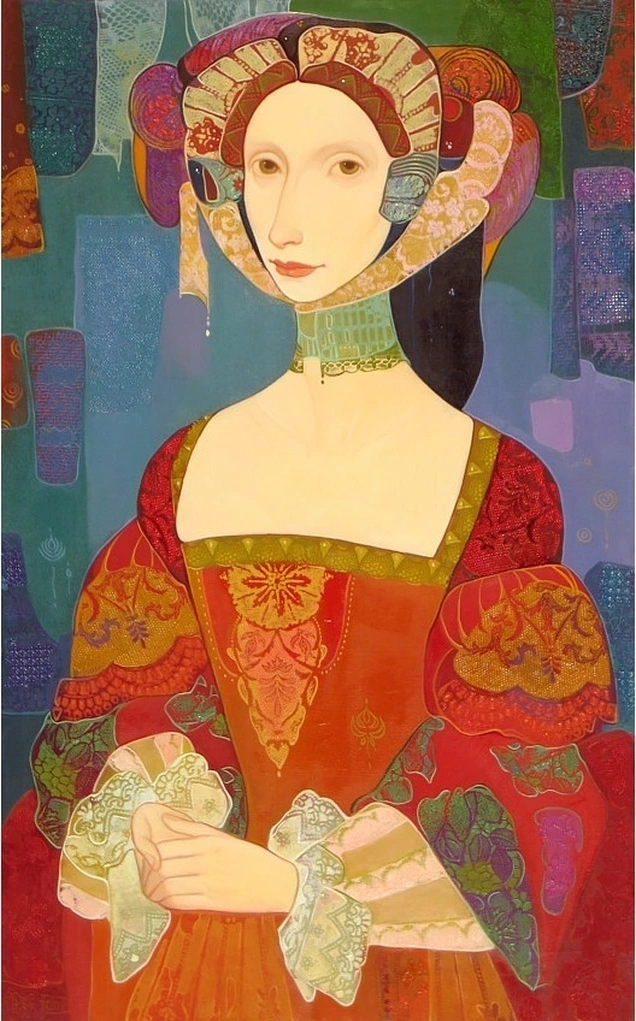 Fine Lady by Maia Ramishvili features a poised and elegant woman adorned in exquisite attire, brought to life with vibrant colors and intricate details.