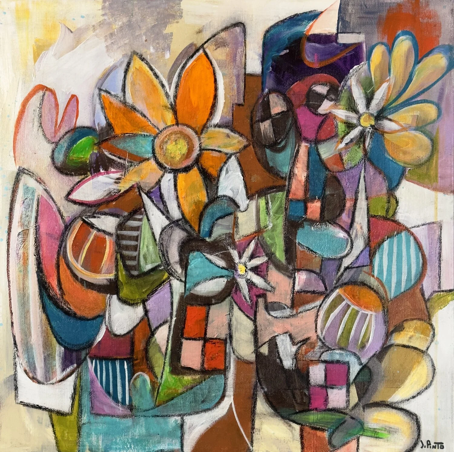 Forget Me Not by Federico Pinto Schmid: A Bold Floral Abstraction in Cubist Style