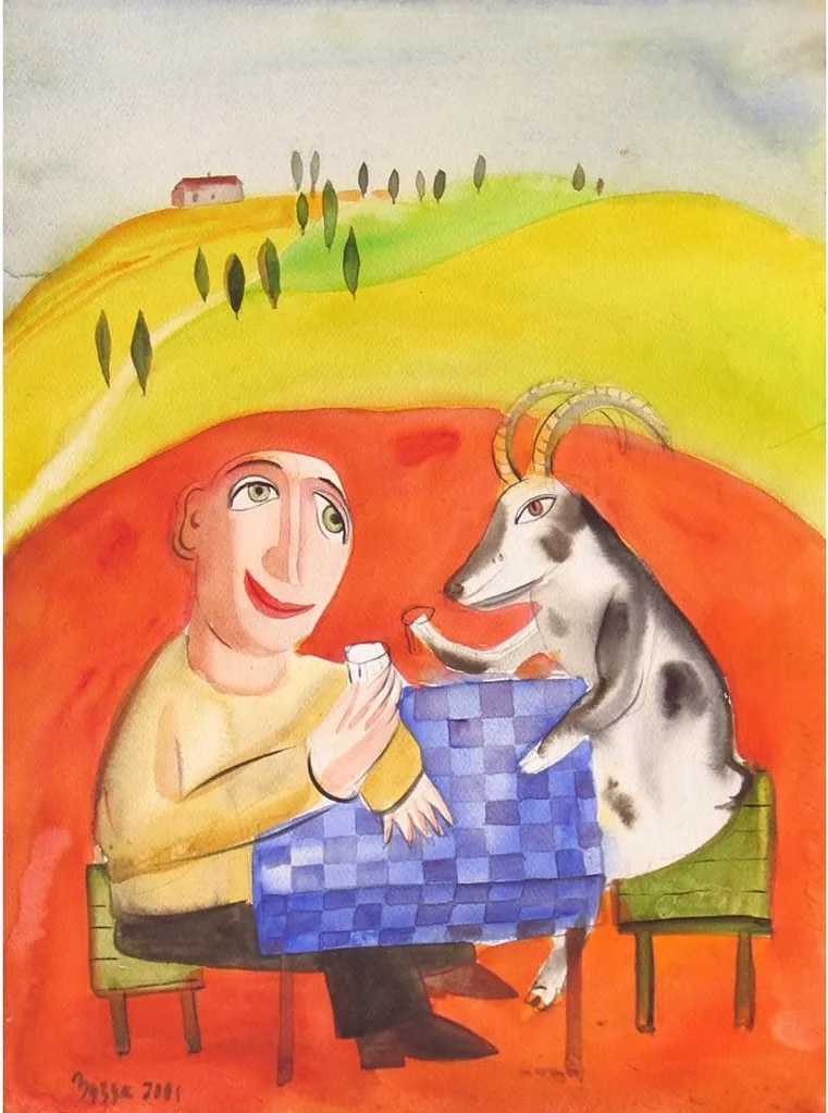 Roman Zuzuk’s Friends is a delightful watercolor painting that brings a whimsical story to life.
