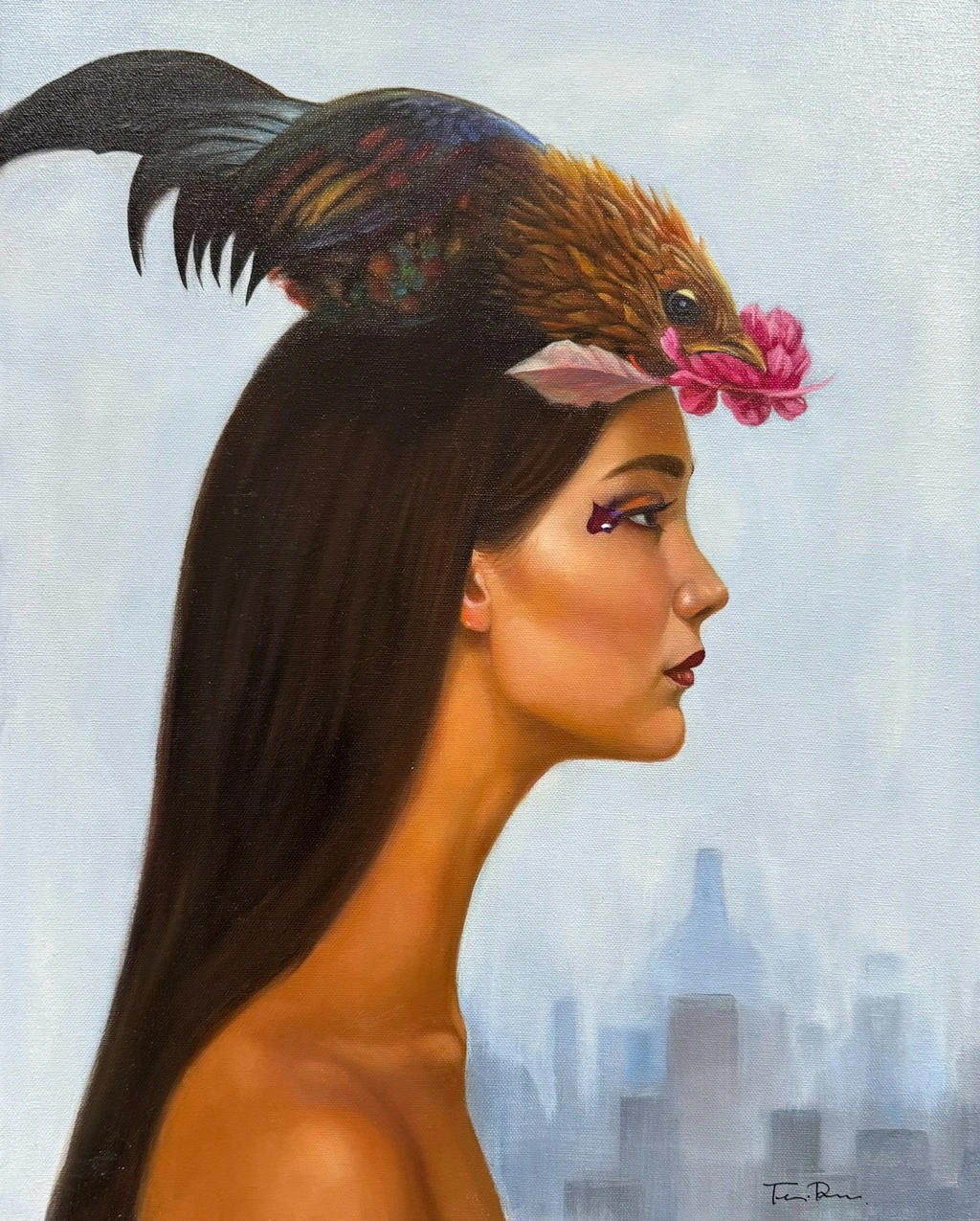The artwork’s muted palette of soft grays and neutral tones evokes a sense of calm and contemplation. Through Terri’s delicate brushwork, the composition balances the strength of the urban setting with the quiet poise of the subject, making it a statement of elegance and self-reflection. Ideal for intimate settings such as bedrooms, studies, or office spaces, "Grace40" brings a sense of subtle sophistication to its surroundings. The urban vibe makes it equally suitable for modern art collections or professional environments that value thought-provoking, minimalist beauty. Terri Duan’s fashion design background is evident in her detailed portrayal of the subject’s profile, a testament to her signature ability to weave realism with narrative. "Grace40" is more than a portrait—it is a window into serenity amidst the modern world.