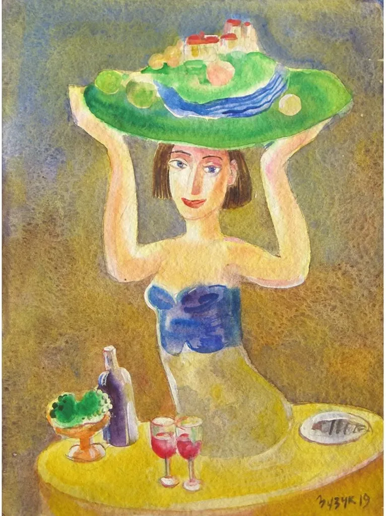 Roman Zuzuk’s Ideal Woman is a captivating watercolor painting that blends fantasy, surrealism, and symbolism.