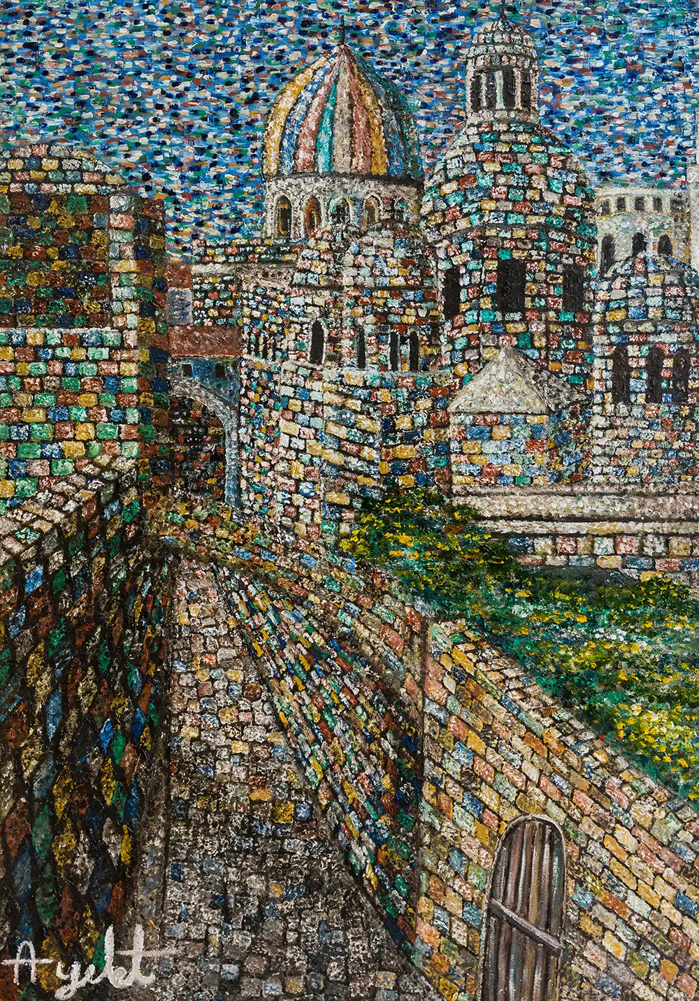 Jerusalem: A textural masterpiece that captures the intricate beauty of the city's sacred architecture and cobbled streets in a kaleidoscope of colors.
