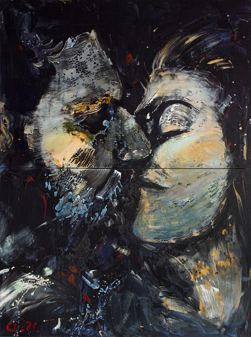 Kiss BG by Serhiy Savchenko: An Intense Abstract Exploration of Intimacy and Emotion