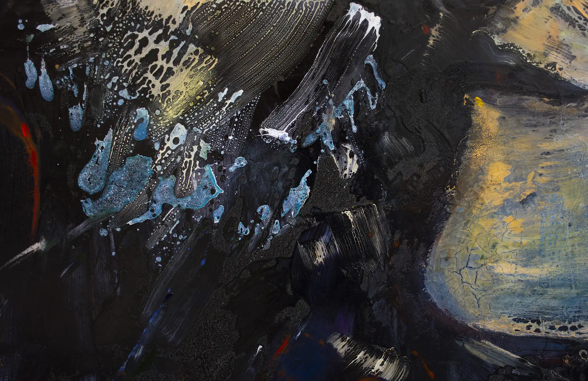 Created in 2021 with oil and acrylic on canvas, this abstract expressionist work captures the essence of a kiss in a way that feels both mysterious and deeply personal. The composition employs a dark, earthy palette, with deep blacks and muted beige tones that contrast strikingly, emphasizing the contours of the faces in close embrace. Savchenko's technique merges figurative elements with abstract textures, blurring the lines between the two forms in a dance of shadows and light. This intense portrayal of human connection invites viewers to engage on an emotional level, evoking themes of love, vulnerability, and passion. "Kiss BG" is ideal for gallery spaces, intimate rooms, or private collections, where its evocative, dreamlike atmosphere can be fully appreciated. Through this work, Savchenko captures not only the physical act of a kiss but the profound emotions it conveys.
