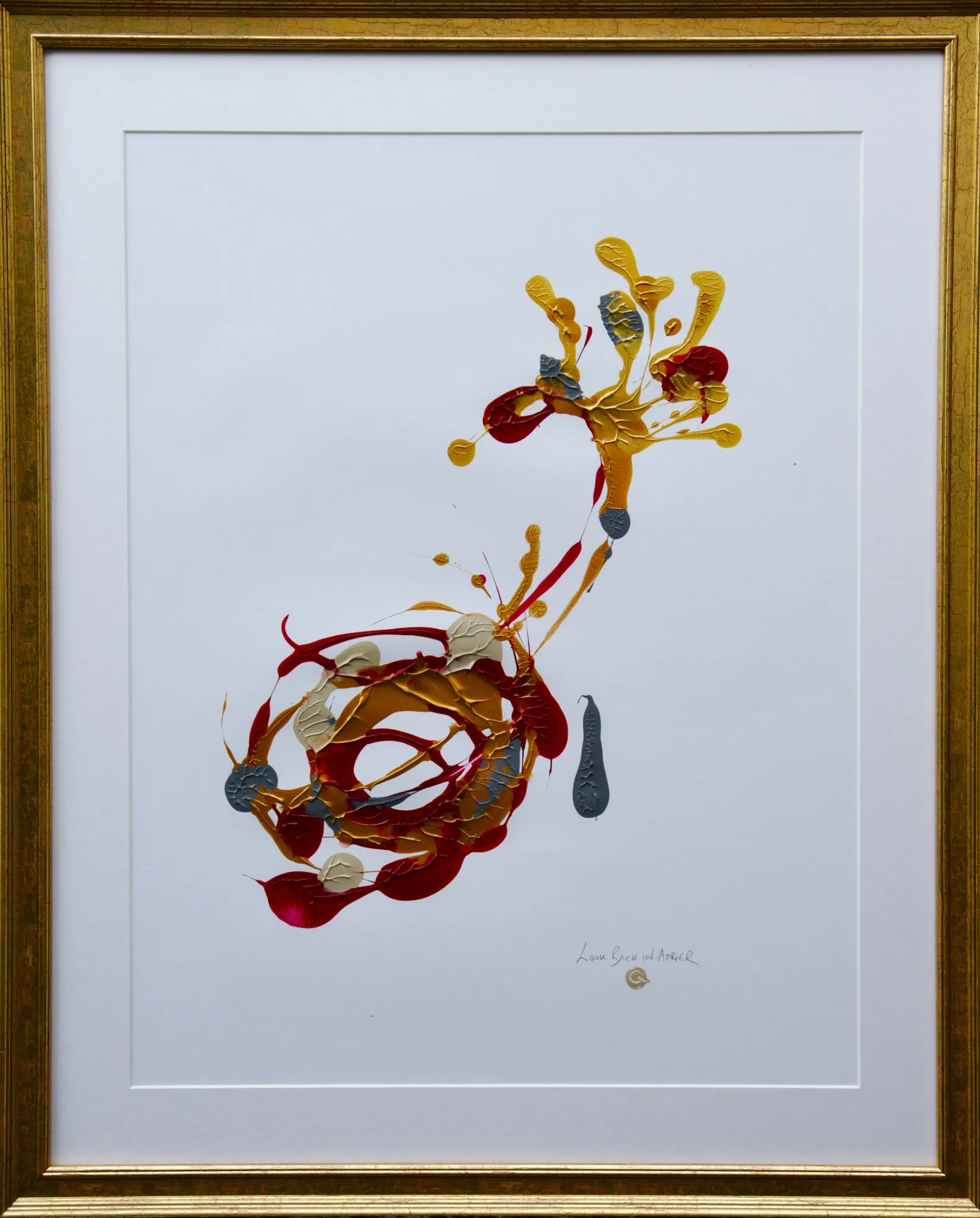 In Look Back In Anger, Priya Bhangoo delivers a visually arresting abstract composition that confronts the viewer with the weight and texture of emotion. Created in acrylic on paper and framed in a delicate soft gold-speckled frame, this 62x76 cm piece balances drama and contemplation. Bold reds, mustard yellows, and greys are swirled and structured with tactile elegance, mimicking both the eruption and containment of inner fire. The painting captures the emotional complexity of looking back—at choices, losses, or moments that still burn. It is a statement piece that resonates best in reflective, grounded spaces such as studies, offices, or elegant foyers.