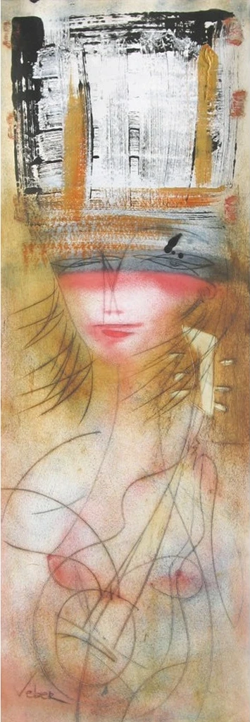 Veber’s delicate yet bold brushwork creates a dreamlike quality, as if the painting itself hums with a silent melody. The expressive layering of lines and textures suggests fluidity, while the contrast between warm and dark tones enhances its depth. The composition invites the viewer to explore the intersection between sound and visual art, making it a thought-provoking centerpiece.
