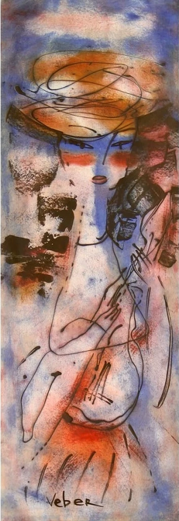 Veber’s expressive brushwork and layered textures enhance the painting’s emotional depth, capturing the essence of music in a visual form. The fusion of abstract elements with figurative hints allows the viewer to interpret the scene in a personal way—whether as a musician lost in their craft or the silent echo of a melody in the air.