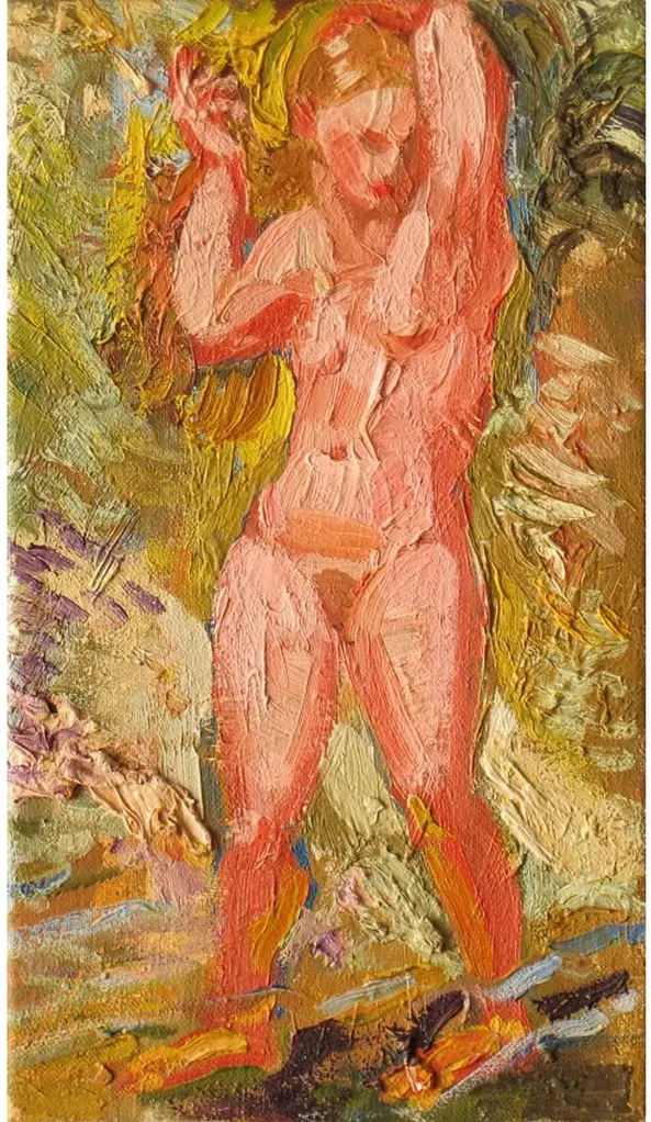 Nude – Expressive and Bold Figurative Painting in Warm Hues, 2024