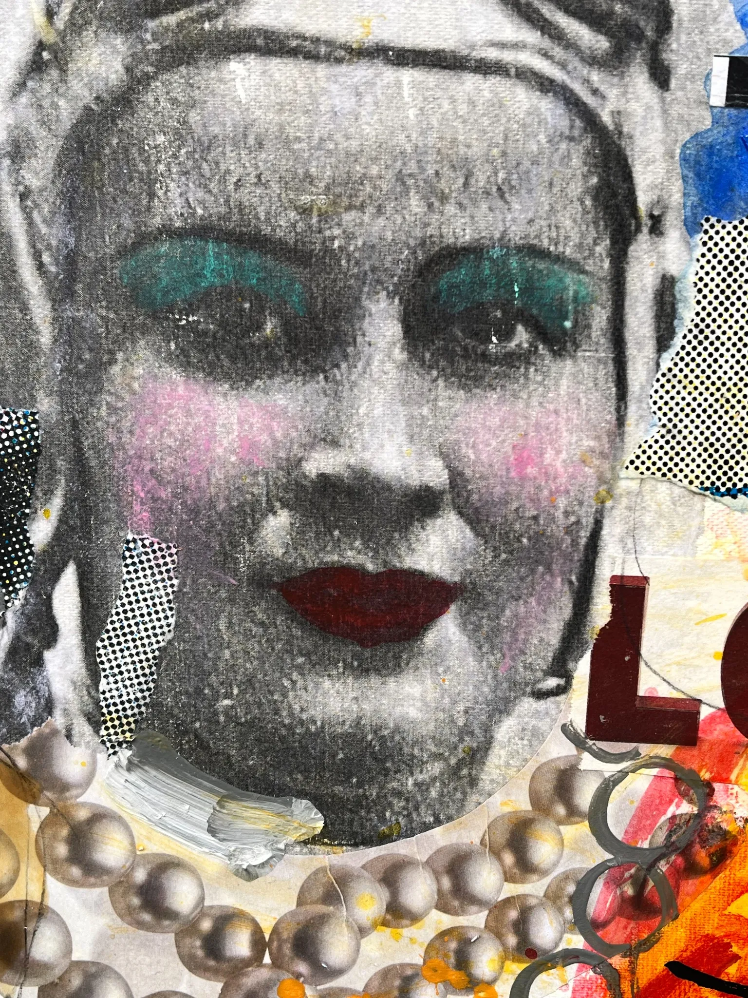 This Pop Art piece explores themes of conceptual identity, typography, and popular culture, with hints of love and humor woven into its bold, whimsical style. It’s a lively collage of emotion and intrigue.