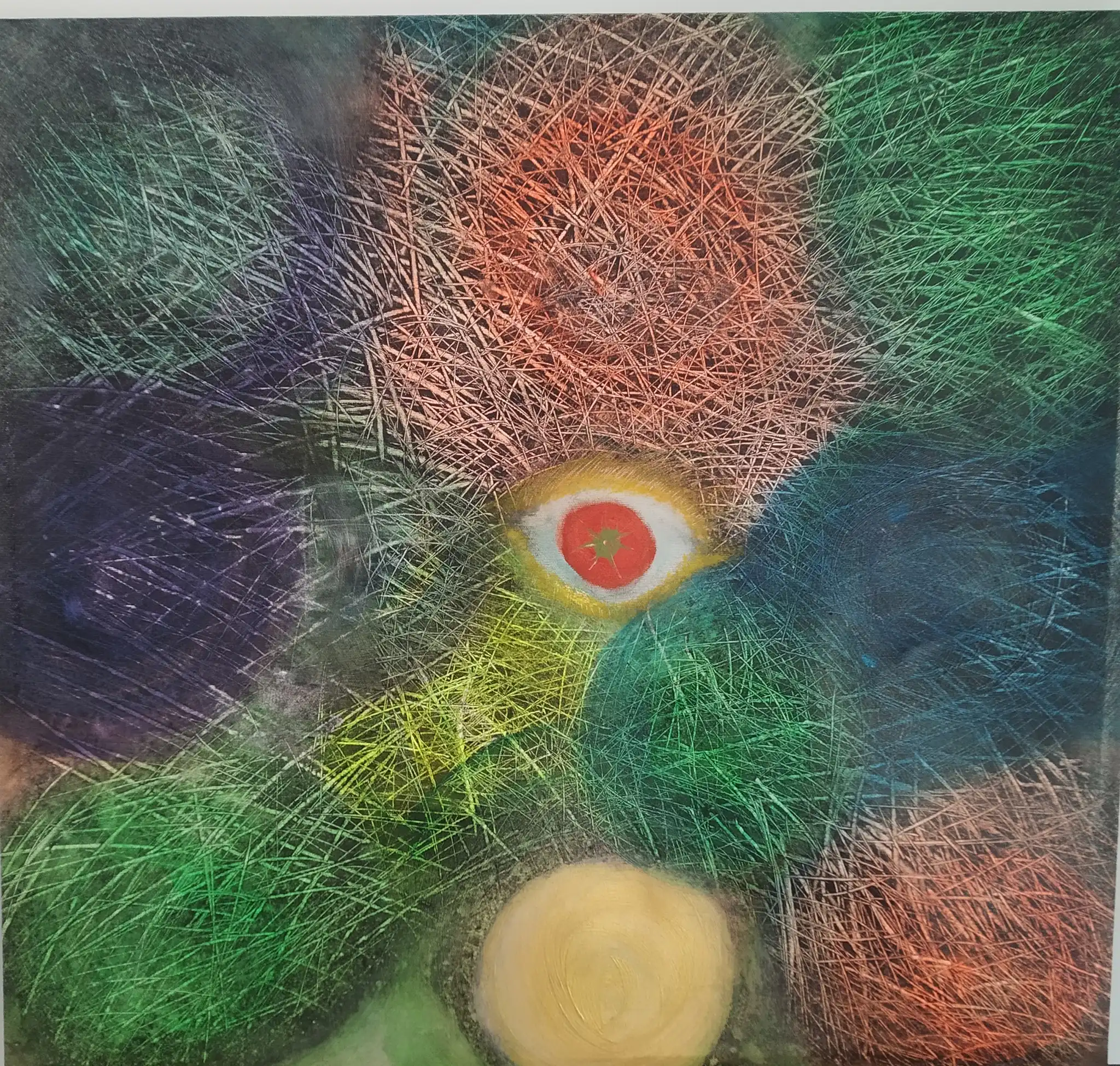 The artwork’s bold use of color and intricate patterns create a sense of mysticism and intrigue, inviting viewers to explore its symbolic elements and hidden meanings. Briceño’s self-taught style, characterized by a spontaneous and intuitive use of paint, reflects his journey of personal discovery and passion for creativity. Each brushstroke seems to pulsate with energy, capturing the dynamic interplay between light and shadow, form and color. "OSO" is perfect for spaces such as living rooms, studies, or galleries, where its vibrant presence can inspire thought and introspection. The painting’s dynamic composition and enigmatic subject matter make it a striking addition to any art collection, celebrating the power of abstract art to evoke deep, personal reflections.
