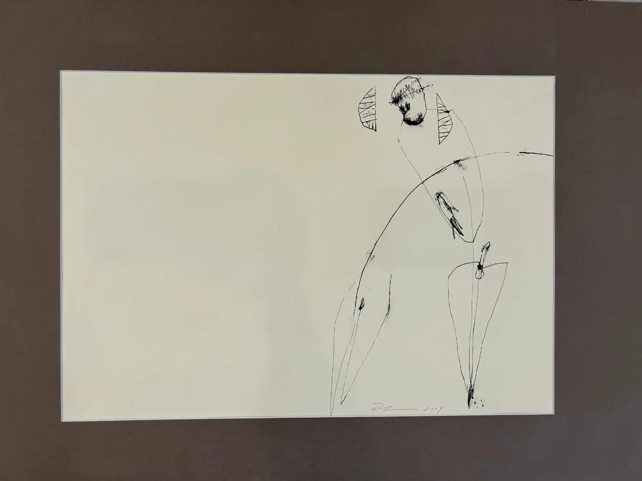 The black ink figure, fragile yet intentional, leans across the white expanse of paper, hinting at desire, restraint, and human connection. The absence of color amplifies the emotional resonance, allowing the negative space to breathe and emphasize the tension within the form. The artwork balances abstract figuration with sensual minimalism, evoking curiosity and contemplation in equal measure.